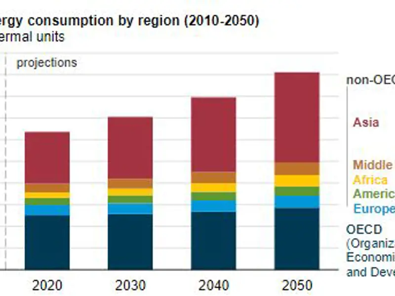 L’EIA (United States Energy Information Administration) proietta i consumi energetici globali fino al 2050 e il risultato di tale esercizio è una stima di un aumento del 50% entro tale data.