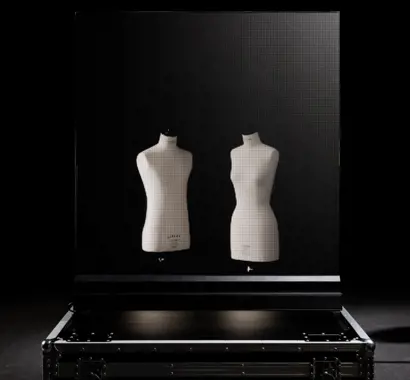 Simbiosi is a modular transparent LED film for fixed indoor installation that allows you to pass through the content and look beyond the screen.