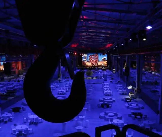 In the occasion of the celebration of 70th anniversary of Cimolai, Wave&Co projected a large indoor LED Wall, 70 sqm of suspended screen.