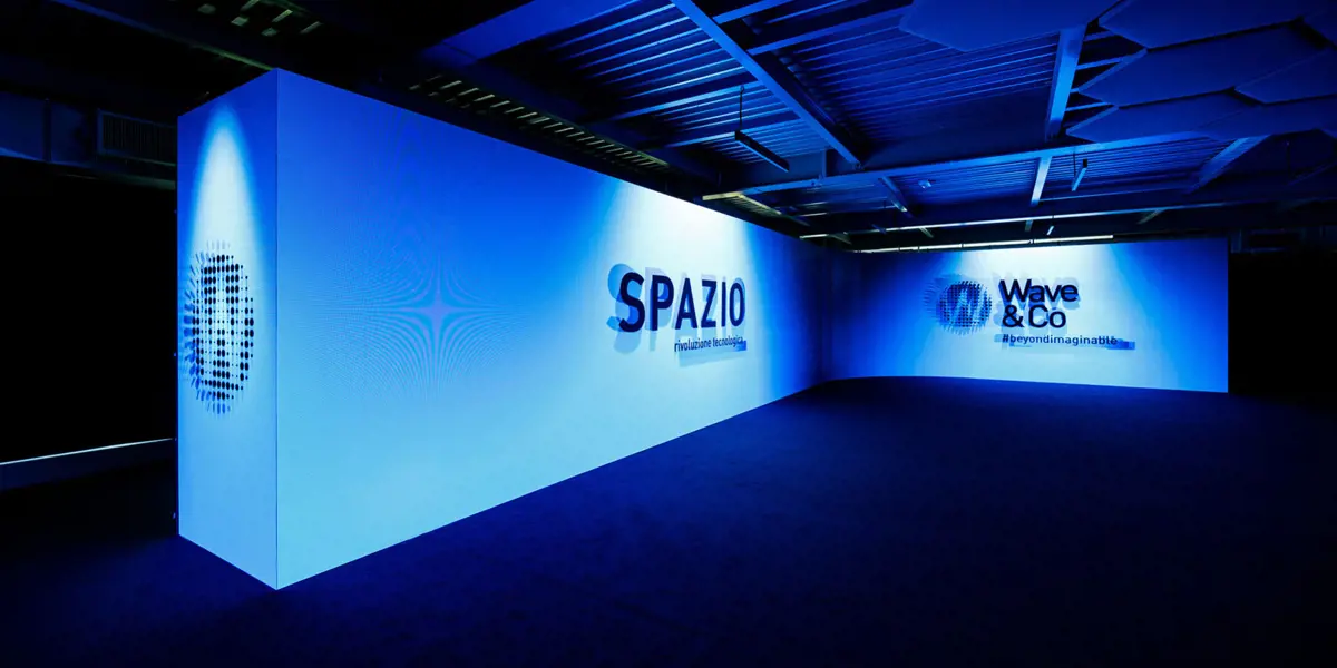 SPAZIO è anzitutto il luogo dove Wave&Co mostra al pubblico e ai clienti i suoi prodotti migliori, schermi led trasparenti, curvi, con risoluzioni e pixel pitch pazzeschi.