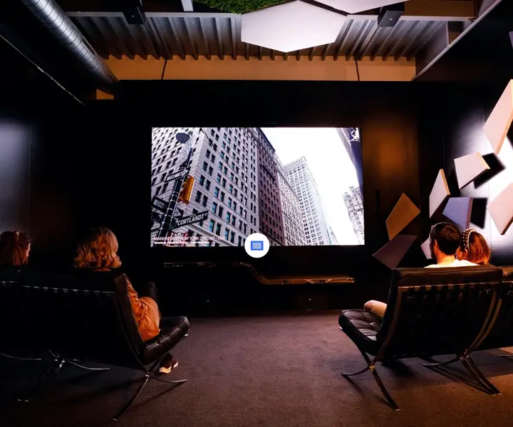 L’allestimento altamente tecnologico, sia da un punto di vista video che audio, garantiva un’esperienza avvolgente per ritagliarsi un momento dedicato ai più svariati utilizzi: da saletta per discutere trattative a saletta Cinema per la visione di un film, grazie a: