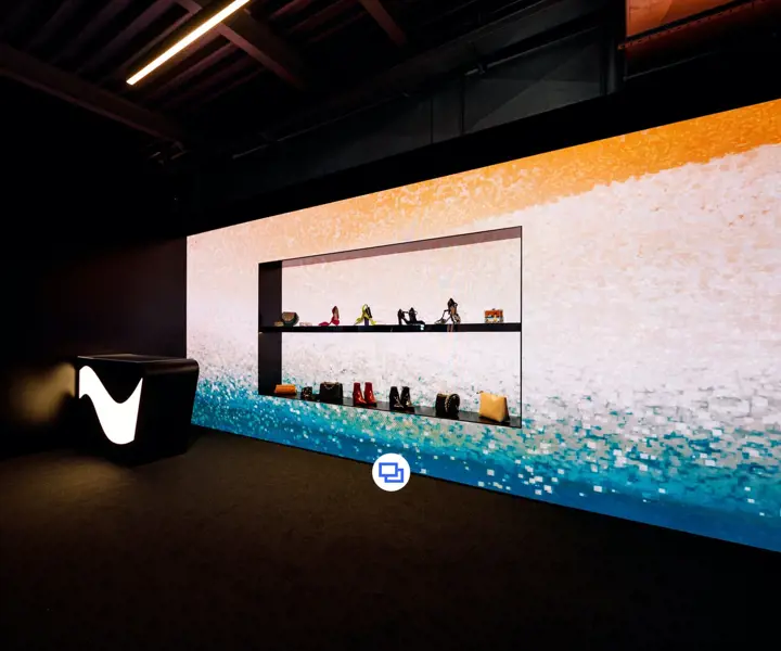 Gli schermi potevano essere connessi gli uni agli altri, per un racconto unico e coordinato. In alternativa, ogni ambiente di SPAZIO poteva essere allestito singolarmente con i suoi display led, per un patchwork esperienziale di alto profilo.