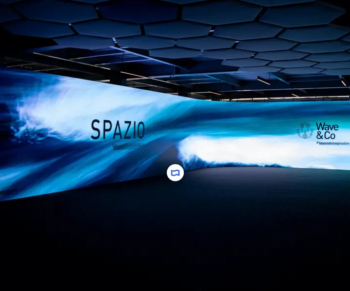 - Ledwall curvo dalle dimensioni stupefacenti (20,5×3 metri), in grado di abbracciare l’intero spazio. L’effetto WOW è garantito dalla curvatura di 90° dello stesso, che permette un’esperienza completamente immersiva e coinvolgente. Risoluzione 6880×1080 pixel e luminosità a 1.200nit;