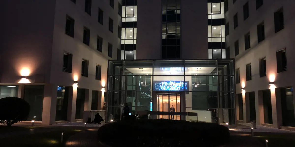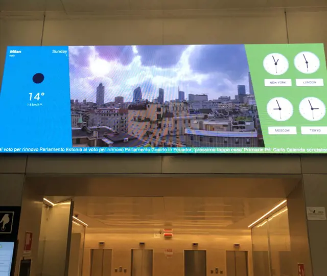 Nel prestigioso complesso di uffici CBRE, a Milano, uno schermo led A-series Indoor 2.9mm, dona vita e luce all’ingresso, mostra dati riguardanti gli uffici e I piani e, all’occorrenza, mostra comunicazioni rilevanti e previsioni meteo.