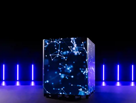 I nostri Cubi Led sono un sistema composto da schermi installati come rivestimento di una struttura disegnata e realizzata artigianalmente dai nostri designer.