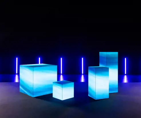 I nostri Parallelepipedi Led sono un sistema composto da schermi installati come rivestimento di una struttura disegnata e realizzata artigianalmente dai nostri designer.