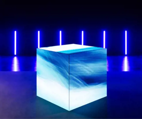 I nostri Cubi Led sono un sistema composto da schermi installati come rivestimento di una struttura disegnata e realizzata artigianalmente dai nostri designer.