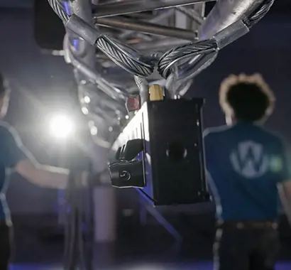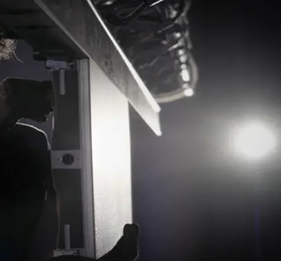 La fase vera e propria del montaggio dei ledwall consiste nell’inserimento di tutti i cabinet all’interno della struttura portante creata, assicurando un preciso allineamento dei singoli componenti. Il cablaggio assicura continuità elettrica e il corretto fluire dei dati nei vari moduli per comporre l’immagine generale.