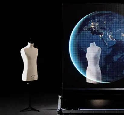 Il cuore di Simbiosi batte grazie all'uso di tecnologie d'avanguardia. I circuiti, integrati in ogni singolo pixel, consentono un layout pulito e senza interruzioni, che accentua l'effetto olografico e la trasparenza dello schermo. Questa innovazione non solo aumenta la qualità visiva ma rende l'esperienza olografica ancora più immersiva, attirando l'attenzione in modo unico e potente.